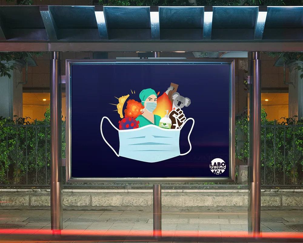 Cette illustration réalisée sur Illustrator retrace les événements marquants de l’année 2020.