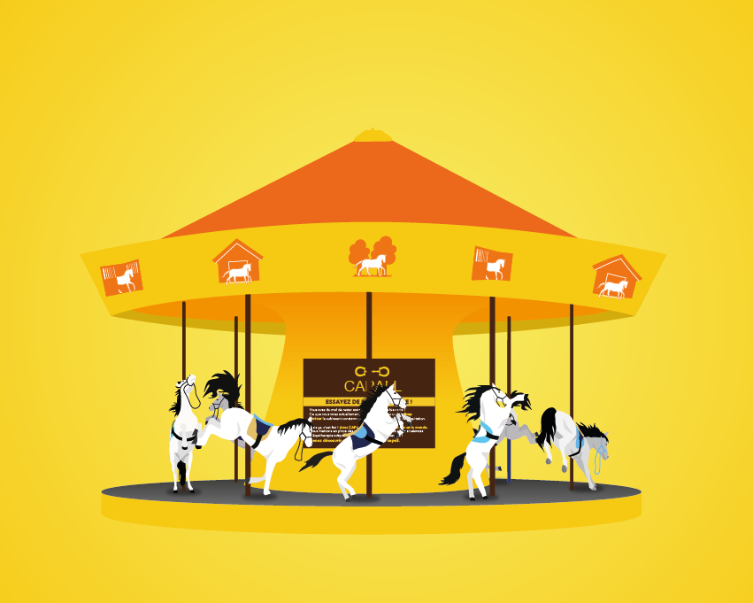 Touchée par son aspect inclusif, j’ai imaginé une installation de street-marketing : un manège composé de chevaux mais dans des positions impossibles à chevaucher. L’idée est de dénoncer la difficulté que rencontrent les personnes en situation de handicap dans certains clubs équestres. Une difficulté que Capall élimine grâce à des infrastructures adaptées.