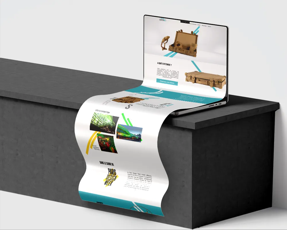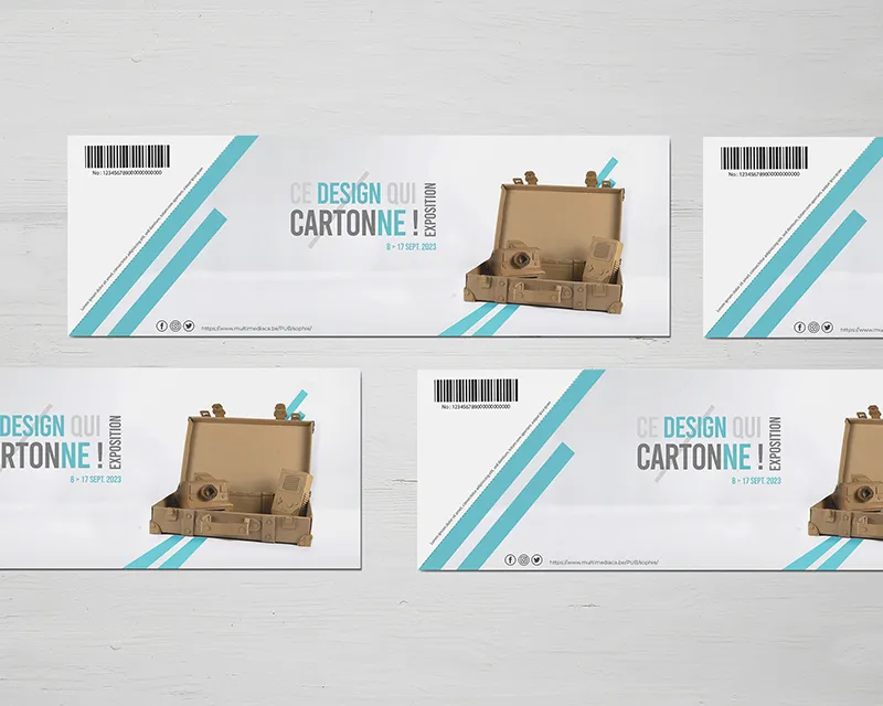 Pour cet événement dédié aux objets iconiques recréés en carton, j’ai conçu la maquette du site, la réalisation du site sous WordPress, la création des tickets, ainsi que la reproduction en carton d’une valise.