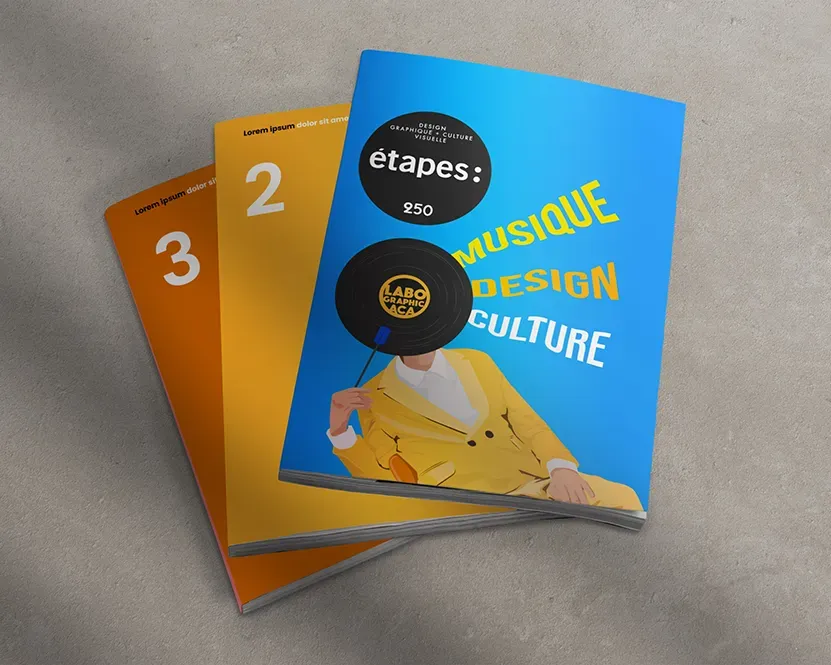 La consigne consistait à réaliser une illustration dans Illustrator en intégrant les mots « musique, design, culture » puis à décliner cette couverture sous forme de GIF.