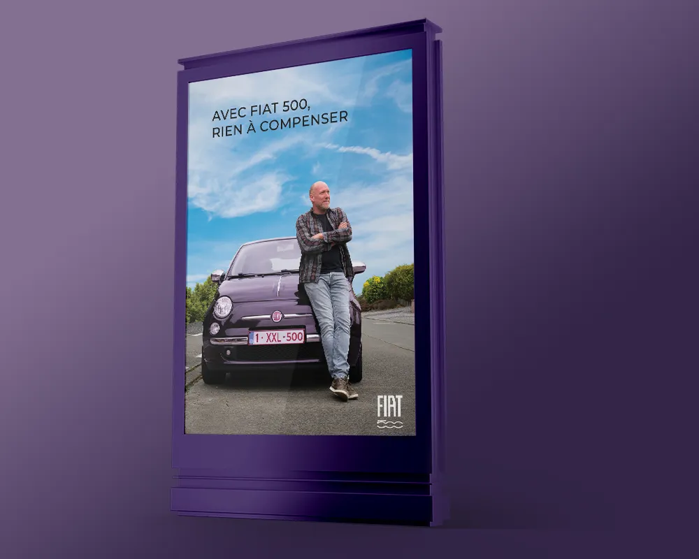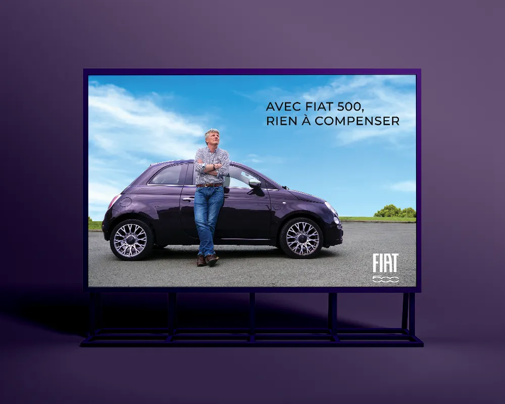 La Fiat 500 traîne souvent une série de clichés : petite voiture « trop mignonne », prétendument réservée aux femmes. Des remarques souvent faites par ceux qui roulent dans de gros véhicules, comme pour combler quelque chose… J’ai voulu jouer avec ces stéréotypes en retournant le message : la Fiat 500, c’est aussi une voiture pour les hommes, mais pour ceux qui n’ont rien à compenser.