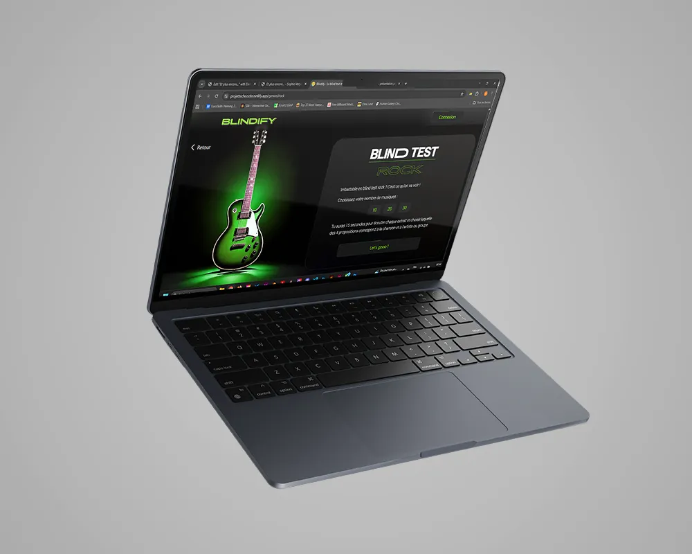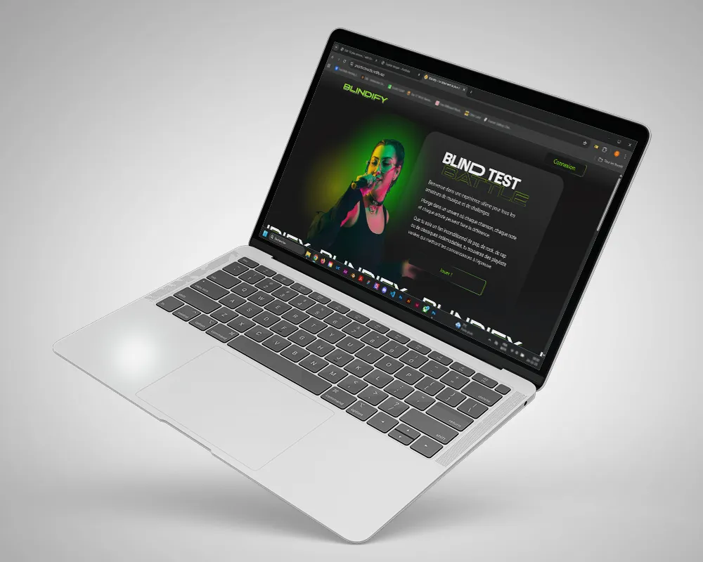 Avec mon binôme Angel Hrynda, nous avons décidé de créer un blind test en ligne, une fonctionnalité que l’on pourrait imaginer intégrée à Spotify, d’où le nom Blindify. Nous avons développé le projet avec le framework React.
