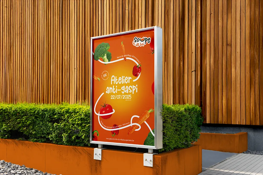 Dans un contexte où l’anti-gaspi, l’économie et la préservation de la planète sont au cœur des préoccupations, j’ai choisi de mettre en avant le nom de l’atelier, « Atelier Anti-Gaspi », afin de créer un message immédiatement lisible, actuel et engageant.