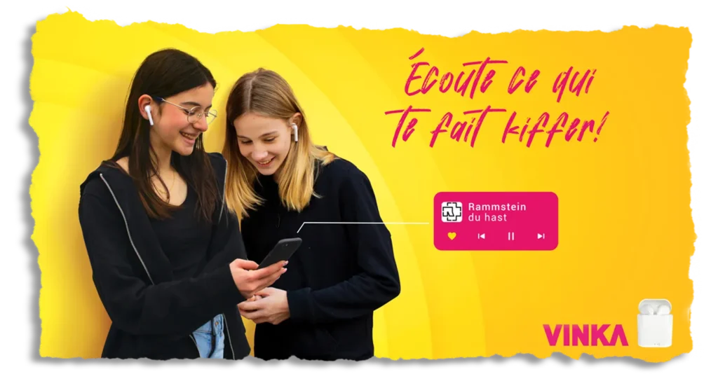 Pour cette campagne, j’ai voulu jouer avec nos a priori musicaux : on imagine souvent le style de musique des gens en fonction de leur look, de leur attitude ou de leur univers… alors qu’on se trompe la plupart du temps. Avec Vinka, plus de masque, plus de codes : tu écoutes vraiment ce qui te fait vibrer, peu importe ton apparence.