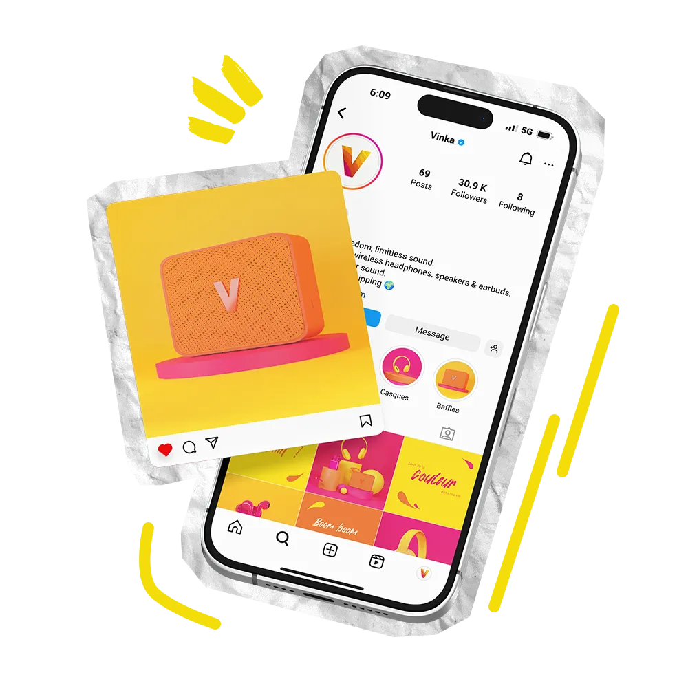 Vinka est une marque d’enceintes, de casques et d’écouteurs sans fil dont l’objectif est de te permettre d’écouter à fond tout ce qui te fait vibrer.
